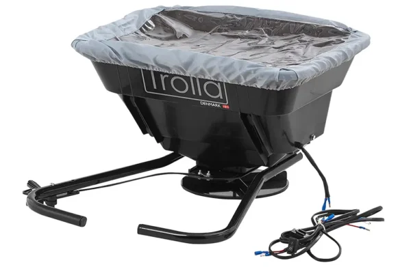 Smart lille spreder til montering bagpå din ATV, så du kan sprede gødning, salt, sand eller andre granulater, på en nem og hurtig måde. Sprederen kobles til ATV’ens 12V-batteri, og så kan du tænde og slukke for sprederen ved hjælp af den lille kontakt, der kan monteres på styret. På siden af beholderen sidder et håndtag, så du kan øge eller reducere mængden af indholdet, der skal spredes, mens du kører. Sprederen leveres inkl. et vejrbestandigt cover i gennemsigtigt plast, så du kan holde indholdet tørt, og hurtigt kan se, hvor meget der er tilbage i beholderen. Vær opmærksom på, at er indholdet fugtigt, pakker det sig i sprederen – indholdet, der skal spredes, skal være helt tørt for at opnå et optimalt resultat.